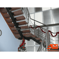 Особливістю цих сходів на больцах є виконані з граніту сходинки, що чудово поєднуються із перилами з нержавіючої сталі.
